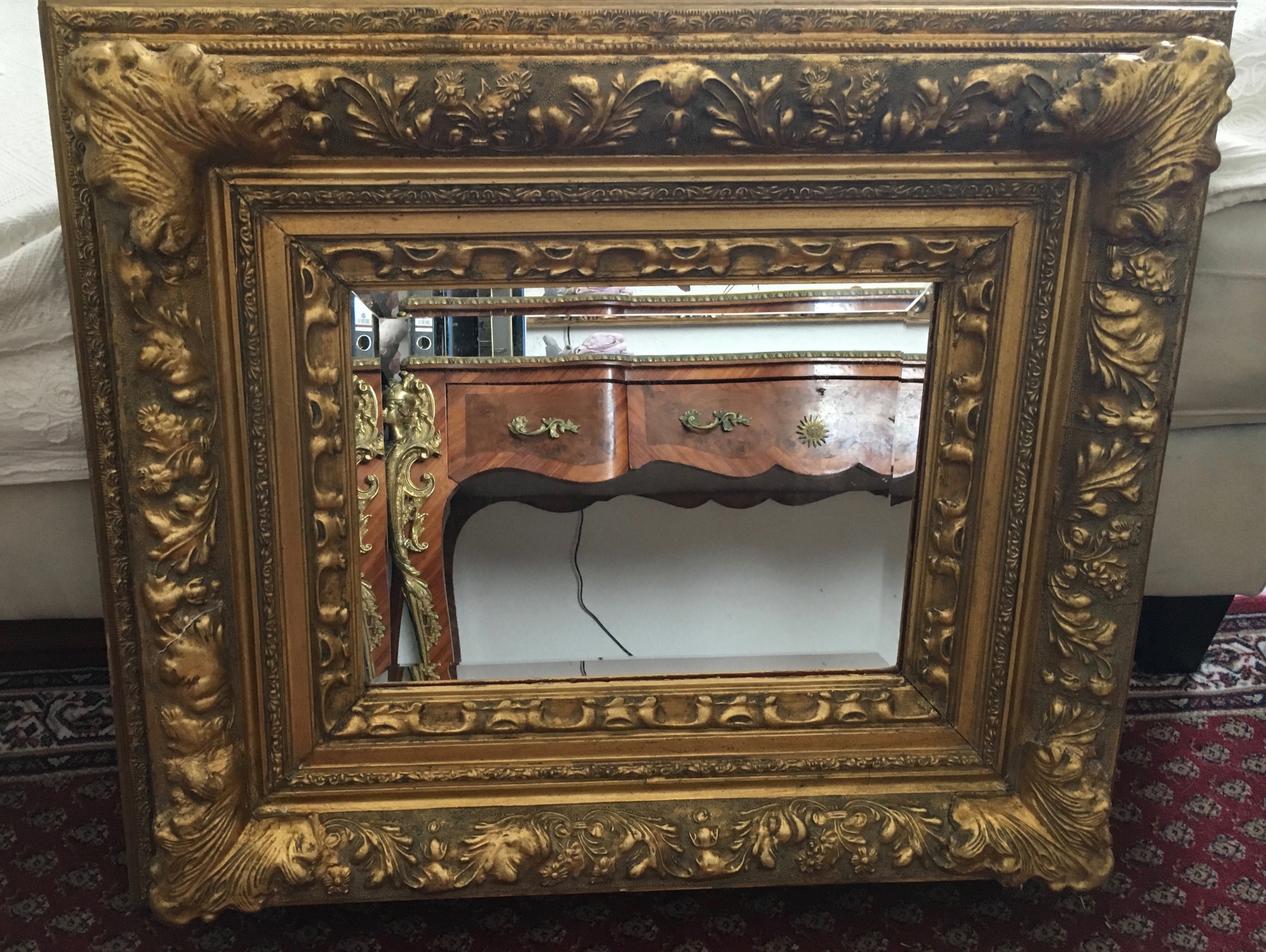 #1049 Spiegel eingefasst in einen schönen goldenen, antiken Rahmen, 469 €