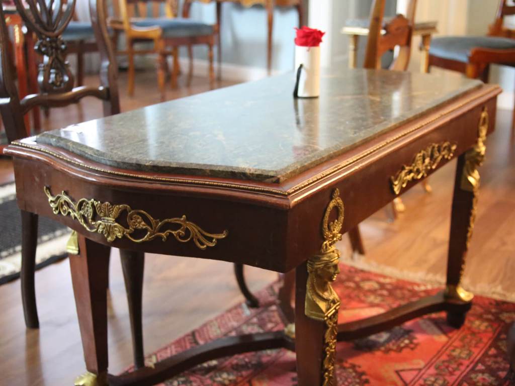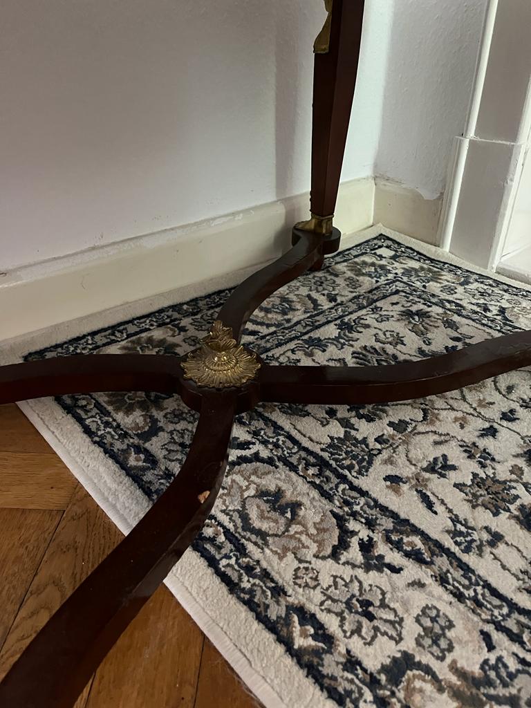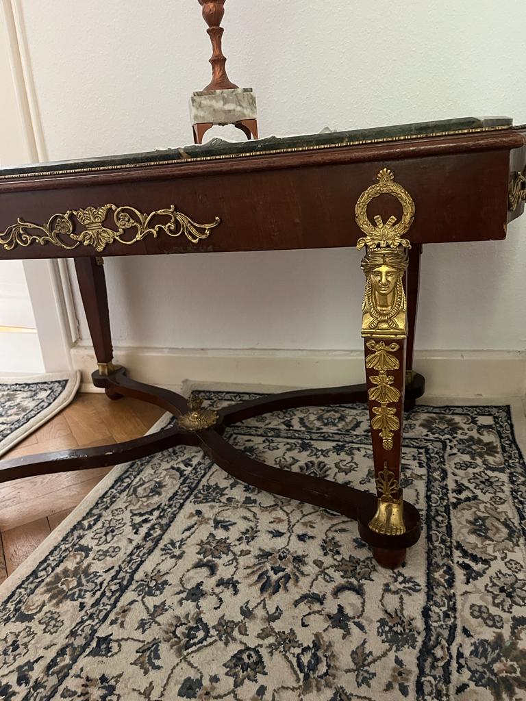 Es ist ein hochwertiges Stilmöbel im Retour d’Egypt- Stil, der nach Napoleon Bonapartes Agypten-Feldzug im Empire gross in Mode war. Allerdings waren die Es ist ein hochwertiges Stilmöbel im Retour d’Egypt- Stil, der nach Napoleon Bonapartes Agypten-Feldzug im Empire gross in Mode war. Beschläge aus feuervergoldeter Bronze, und fanden sehr viel sparsamer Verwendung. Die Eck- Ornamente der Türfüllungen scheinen dem Jugendstil entlehntBeschläge aus feuervergoldeter Bronze, und fanden sehr viel sparsamer Verwendung. EMPIRE Couchtisch mit Marmorplatte