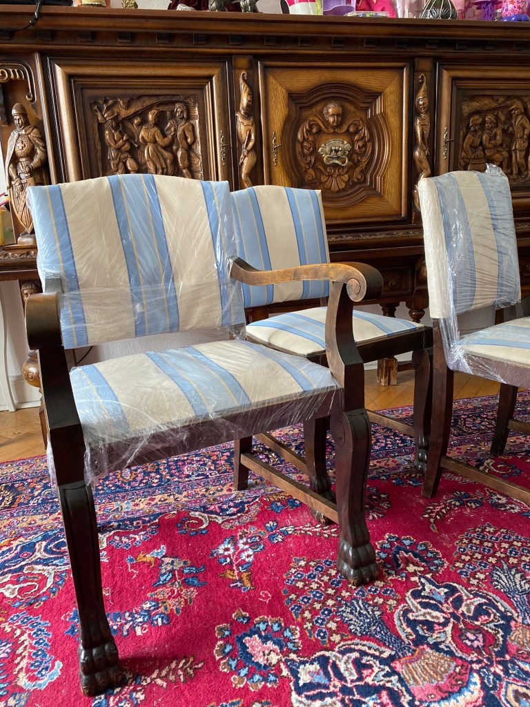 Zwei Stühle und ein Schreibtischstuhl Löwenfüße 350€ Veröffentlicht am 14.05.202129.04.2023 von REPEAT CHARME Restauriert und neu bezogen. 1880 in Gründerzeiteiche. Dunkle, fast schwarze Farbe Поделиться ссылкой: AntiquariatTeilen Auf Facebook teilen (Wird in neuem Fenster geöffnet) Facebook Email a link to a friend (Wird in neuem Fenster geöffnet) E-Mail Drucken (Wird in neuem Fenster geöffnet) Drucken Auf WhatsApp teilen (Wird in neuem Fenster geöffnet) WhatsApp Auf Telegram teilen (Wird in neuem Fenster geöffnet) Telegram Share on LinkedIn (Wird in neuem Fenster geöffnet) LinkedIn Gefällt mir Wird geladen …