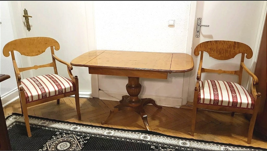 Würzenholztisch( Breite: 68.5cm, Lange: 1.30cm )mit 2 Halbsessel.